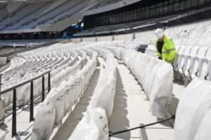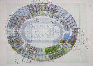 Every seat. My attempt to sit on every seat in the Olympic Park Stadium prior to the Olympic Games. Over the course of three weeks, I managed to sit on 80% of all the seats – something over 60,000. Whilst the running tacks and field were quiet I was transforming the normally more passive role of spectator into something both more active – and exhausting!
